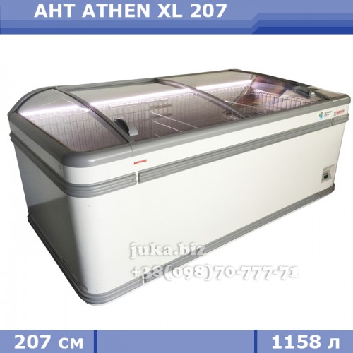 Модельна серія морозильних скринь з гнутим склом АНТ Athen XL - це нове покоління ATH Cooling Systems. Ця модель морозильних скринь поєднує в собі модний дизайн і великий обсяг. Збільшення обсягу викладки товарів сприяє збільшенню асортименту представленої продукції, що в свою чергу дасть можливість збільшитися продажу. Естетично привабливий вигляд цієї моделі морозильного обладнання не залишиться без уваги покупців.